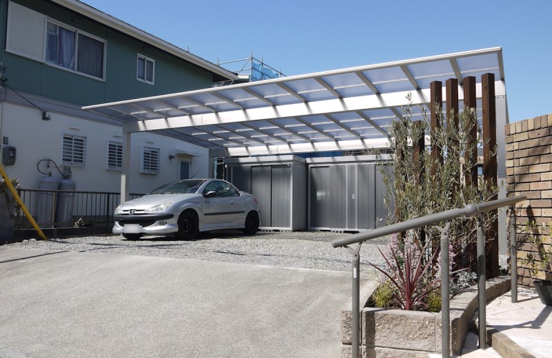 エクステリア.comプラス > 施工事例 > 三重県四日市市 Y様邸 YKKap エフルージュ 3台用 カーポート 駐車場 車庫 外構