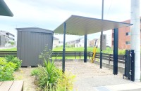 エクステリア.comプラス > 施工事例 > 三重県四日市市 W様邸 マツモト物置 MN-1818 PG色 デザイン物置 物置 エクステリア 外構