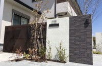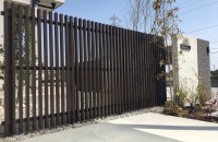 木調の縦格子スクリーンフェンスで、和モダンな印象に仕上がるフェンスです。