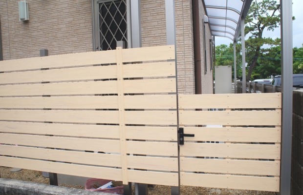 エクステリア.comプラス > 施工事例 > 三重県鈴鹿市 K様邸 エクスタイル アーバンルーバー 縦格子スクリーンフェンス 日本製樹脂フェンス 外構リフォーム