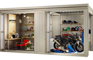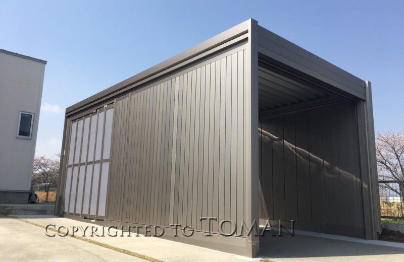 季節を問わず、ガレージ内での作業がある場合には、折戸パネルが威力を発揮する車庫です。