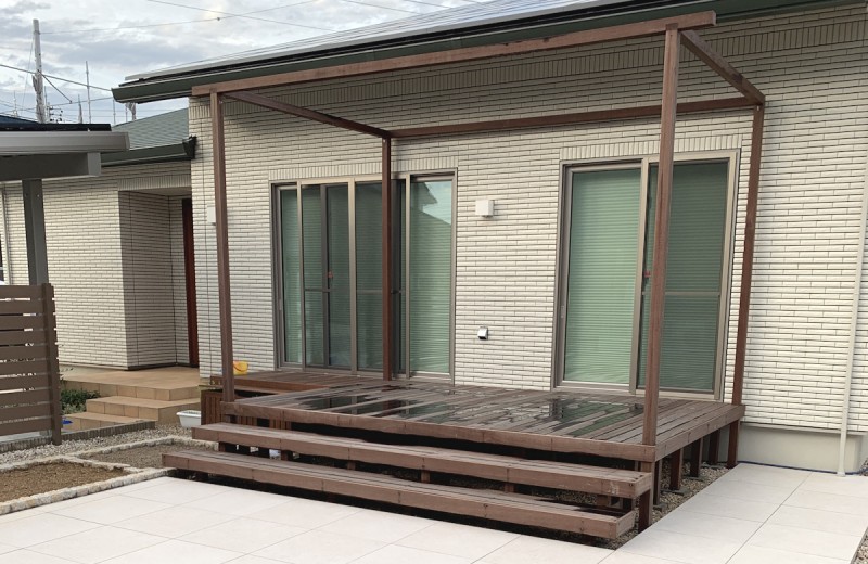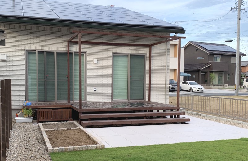 エクステリア.comプラス > 施工事例 > 三重県松阪市 M様邸 天然木ウッドデッキ ウリンデッキ&ウリン製パーゴラ お庭 外構