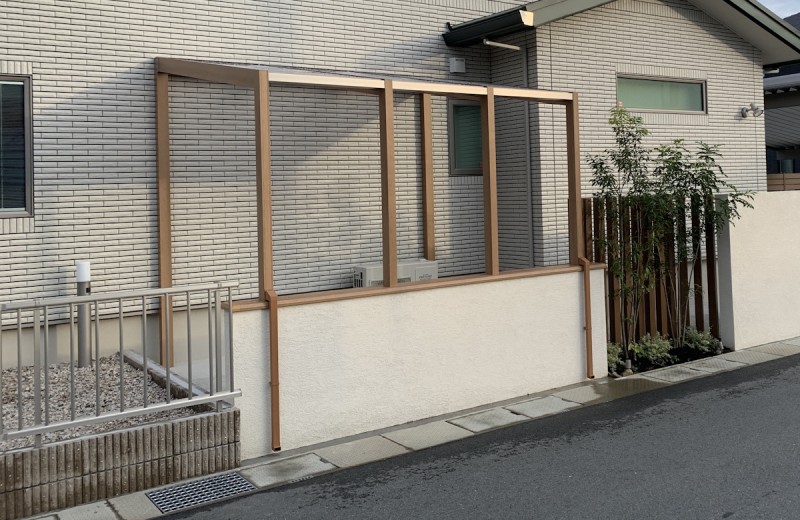 リクシルのガーデンルーム・ココマを施工させていただきました。腰壁付きのサイドスルータイプでテラス屋根、自転車置き場など幅広い用途で活用できます。