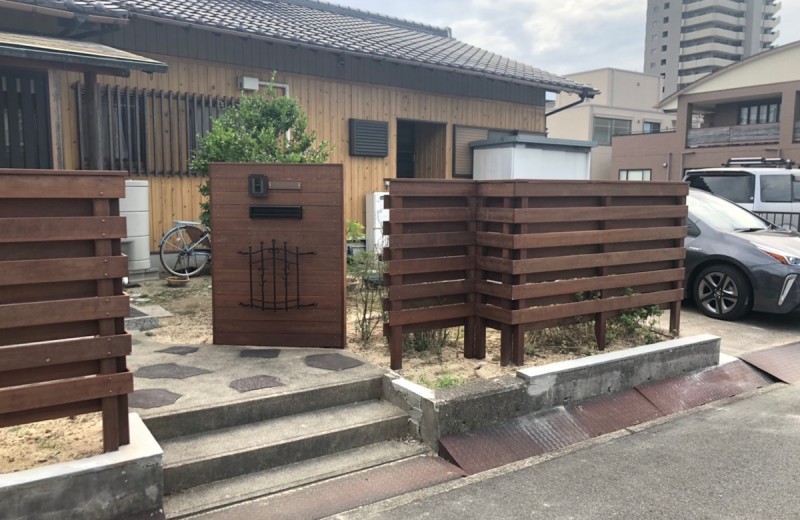 世界最強のハードウッドとも呼ばれるウリンを使って、オリジナルの門柱を作成しました。 三重県(四日市市、桑名市、鈴鹿市、津市、松阪市、伊勢市、名張市、伊賀市など)・近畿地区(愛知県・大阪府・奈良県・和歌山県・滋賀・京都(※一部地域))での門柱工事・外構工事なら、信頼と実績の当店にお任せください!! 愛知県(名古屋市、清須市、春日井市、尾張旭市、長久手市、日進市)・滋賀県(大津市、近江八幡市、守山市、草津市、栗東市、甲賀市)など近隣エリアからもお問い合わせいただいております!