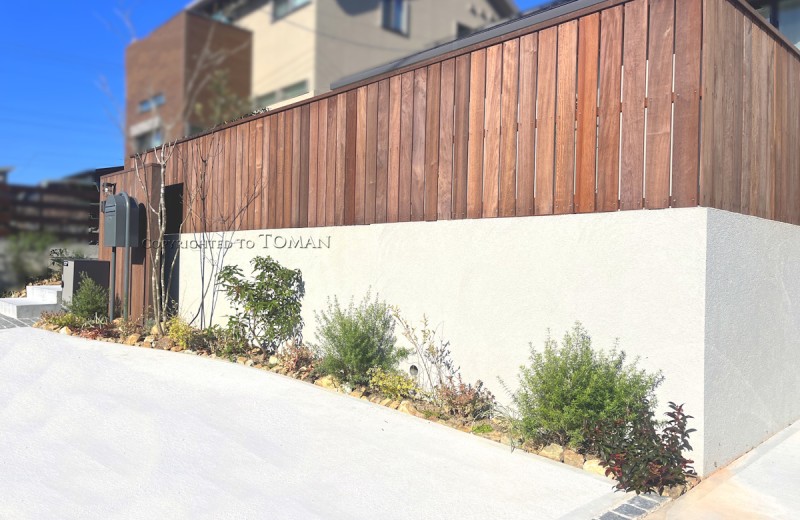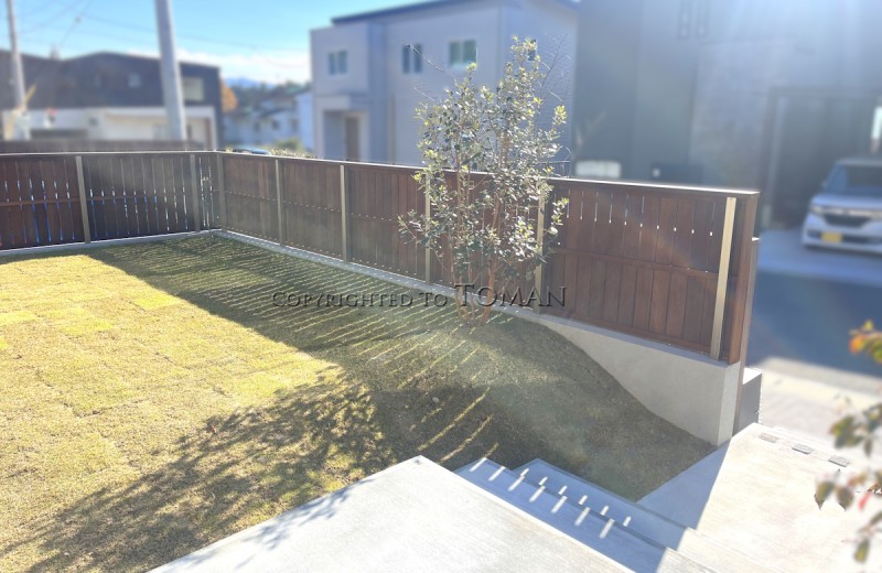 エクステリア.comプラス > 施工事例 > 三重県伊勢市 M様邸 ウリンフェンス 木製目隠しフェンス 縦張りフェンス 外構 お庭