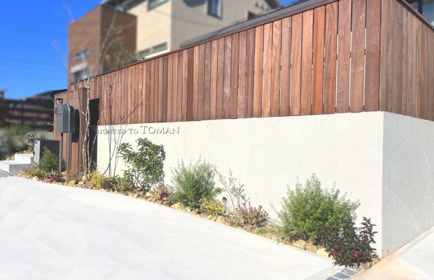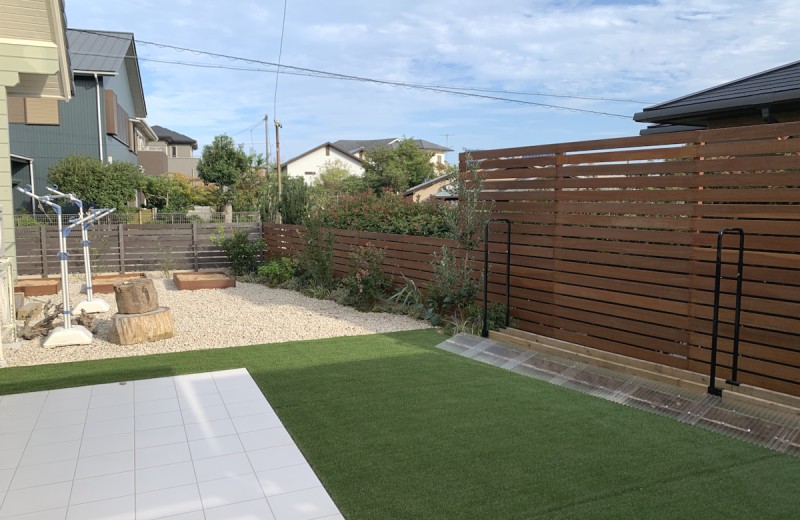 エクステリア.comプラス > 施工事例 > 三重県津市 I様邸 ウリンフェンス 天然木製目隠しフェンス お庭 ガーデン工事