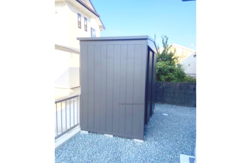 エクステリア.comプラス > 施工事例 > 三重県三重郡 I様邸 マツモト物置 MN-2214 PG色 デザイン物置 エクステリア 外構