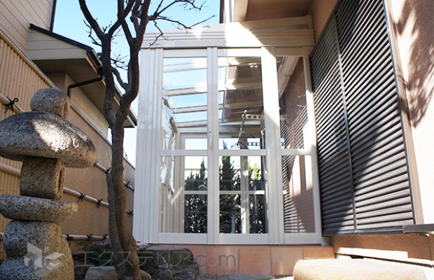 エクステリア.comプラス > 施工事例 > 三重県菰野町 F様邸 リクシル ココマ ガーデンルーム タイルテラス 松阪市 津市 鈴鹿市 亀山市 四日市市 桑名市 弥富市