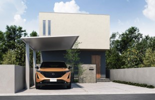 三協アルミのカーポート「FⅡ/エフツー」は梁と屋根の一体構造を実現した新構造のカーポートです。モダンでスマートな住宅にフィットする、フラットなシルエットになっています。