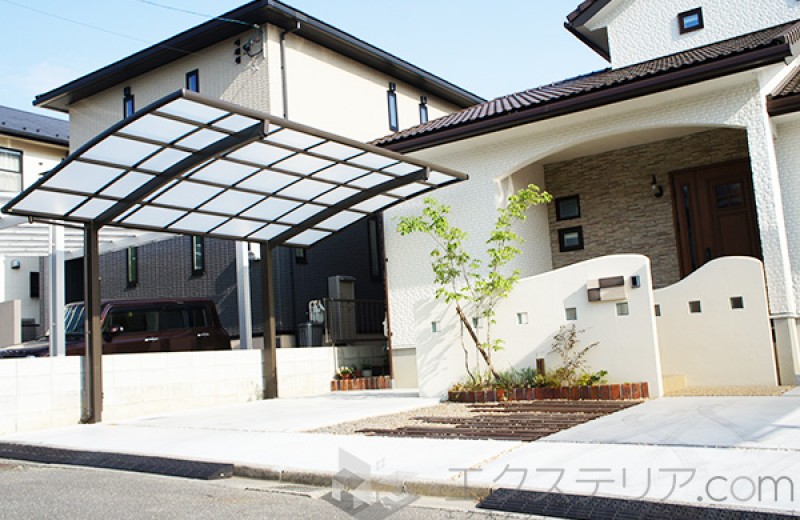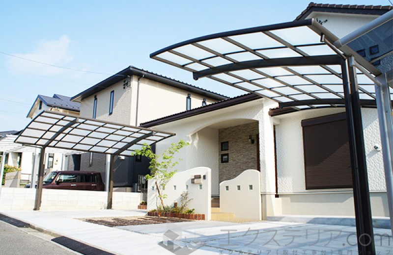 エクステリア.comプラス > 施工事例 > 三重県桑名市 O様邸 リクシル(LIXIL) ネスカF 1台用×2基 カーポート 外構