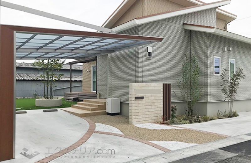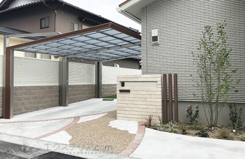 エクステリア.comプラス > 施工事例 > 三重県四日市市 O様邸 四国化成 マイポートNext 2連棟 後方支持カーポート 外構