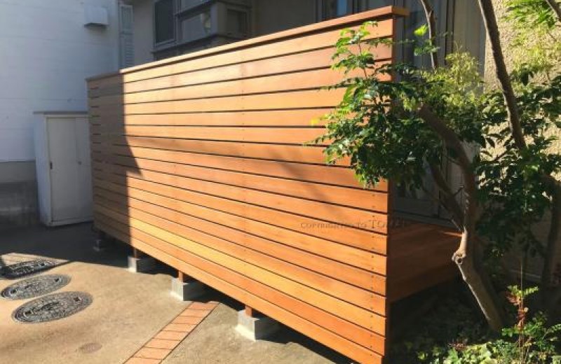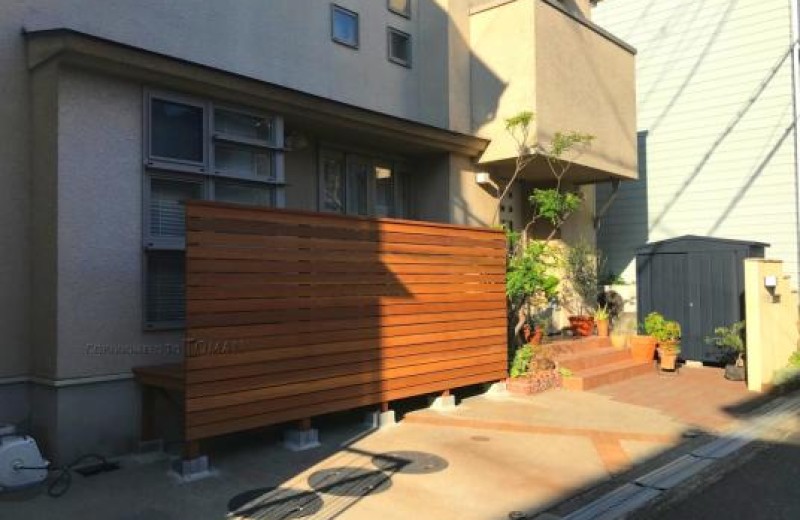 エクステリア.comプラス > 施工事例 > 大阪府泉佐野市 K様邸 ウリンフェンス 目隠しフェンス ウッドデッキ ウッドフェンス 吹田市 豊中市 箕面市 茨木市 高槻市