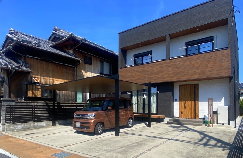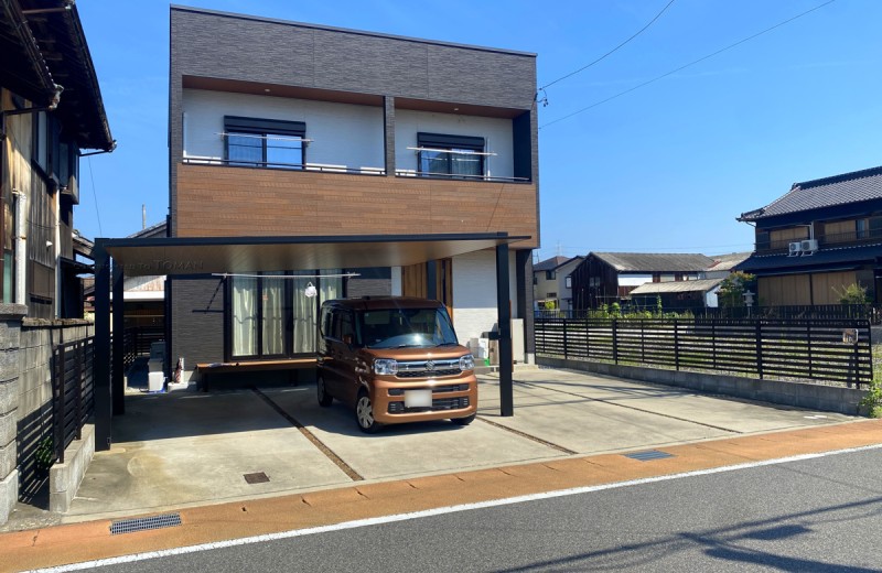 エクステリア.comプラス > 施工事例 > 三重県四日市市 H様邸 リクシル カーポートSC 2台用 木調 松阪市 津市 鈴鹿市 亀山市 桑名市