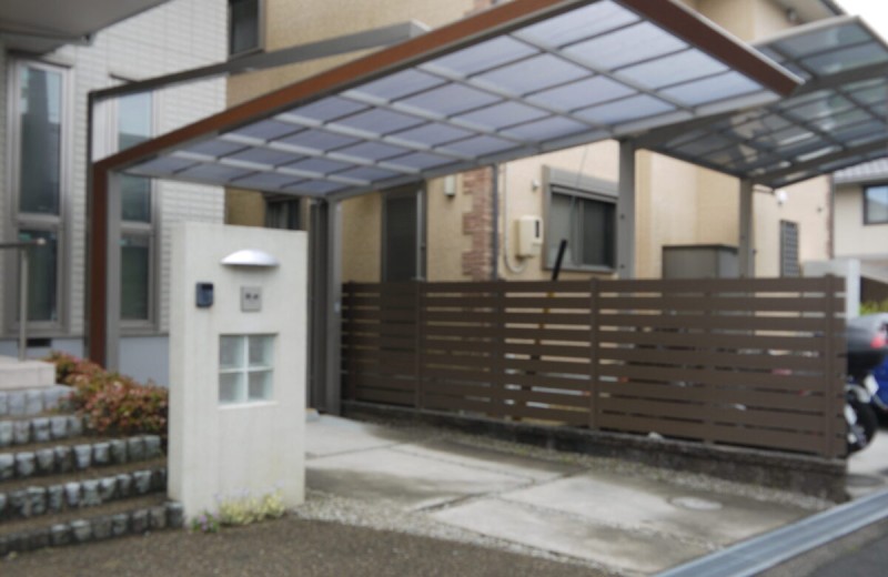 三重県四日市市 O様邸 四国化成 マイポートNext 木調 1台用 後方支持カーポート 車庫 外構