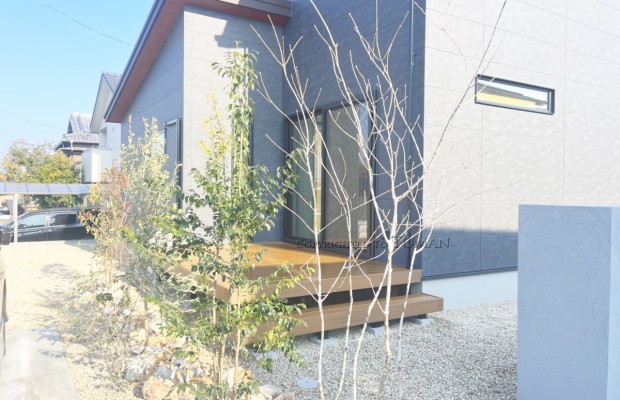 三重県菰野町 I様邸 LIXIL 人工木デッキ 樹ら楽ステージ ウッドデッキ お庭 外構